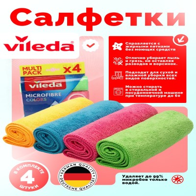 Vileda Microfibre Colors مجموعة من 4 قطع من أقمشة الميكروفيبر للتنظيف