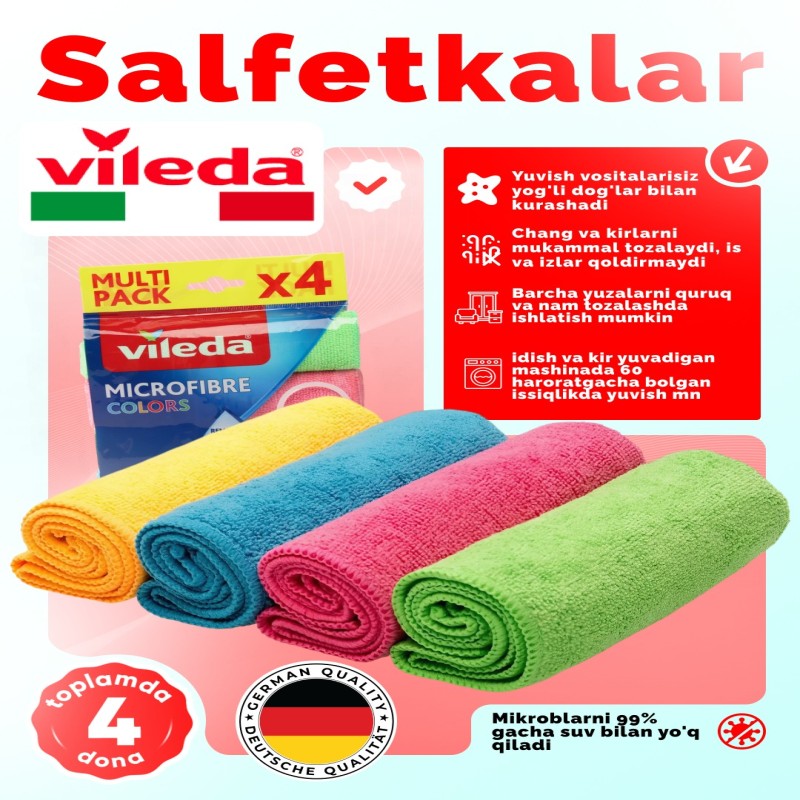 Vileda Microfibre Colors مجموعة من 4 قطع من أقمشة الميكروفيبر للتنظيف € 50000.0 |